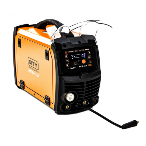 GTM MCTD-416L - багатофункціональна установка для зварювання чорних металів у середовищі захисних газів. Відмінною особливістю цієї моделі є універсальність: крім основного режиму MIG, є режим ручного ММА і аргонодугового зварювання LIFT TIG, а також режим плазмового різання CUT. Напівавтомат обладнаний великим LCD-дисплеєм, на якому відображаються поточні налаштування і параметри.